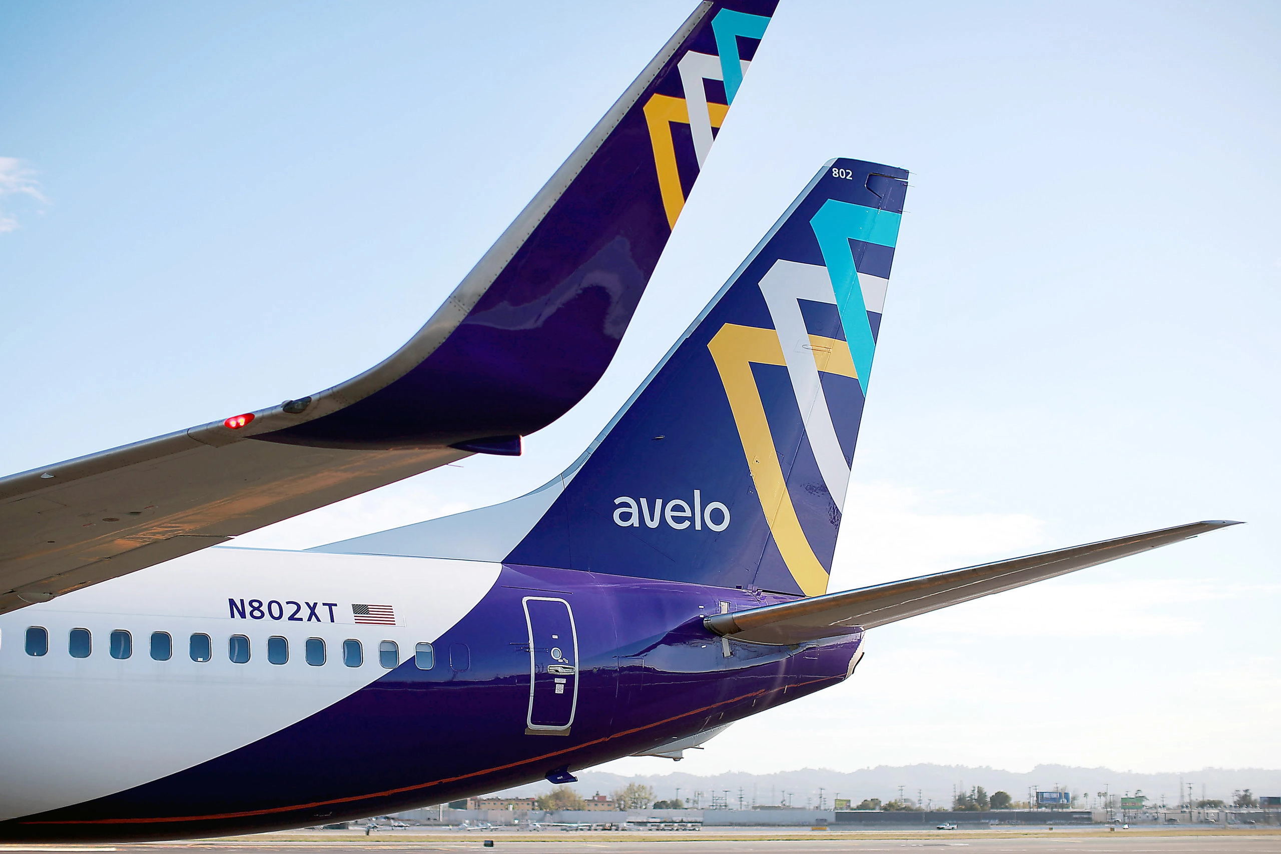 The Avelo aircraft is seen at Hollywood Burbank Airport on April 07, 2021 in Burbank, California. (Photo by Joe Scarnici/Getty Images for Avelo)