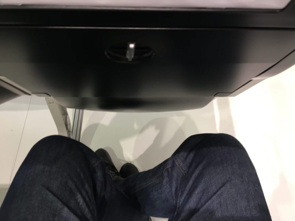 Mirus first showed off the prototype Kestrel seat at the 2019 edition of Aircraft Interiors Expo, nearly seven years ago. At the time I described it as the “best I’ve seen so far” for making the knee room comfortable, even in that tight a space. I’ll reserve judgement on overall comfort until I can/have to sit in it for more than a few minutes at a trade show, but knees should be relatively safe.